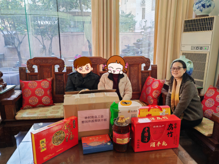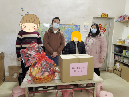 钟村街总工会向患重病员工与外派帮扶干部家庭奉上节日慰问品与慰问金,共计7500元,把总工会的温雅与仁和送到员工及家属心坎上。